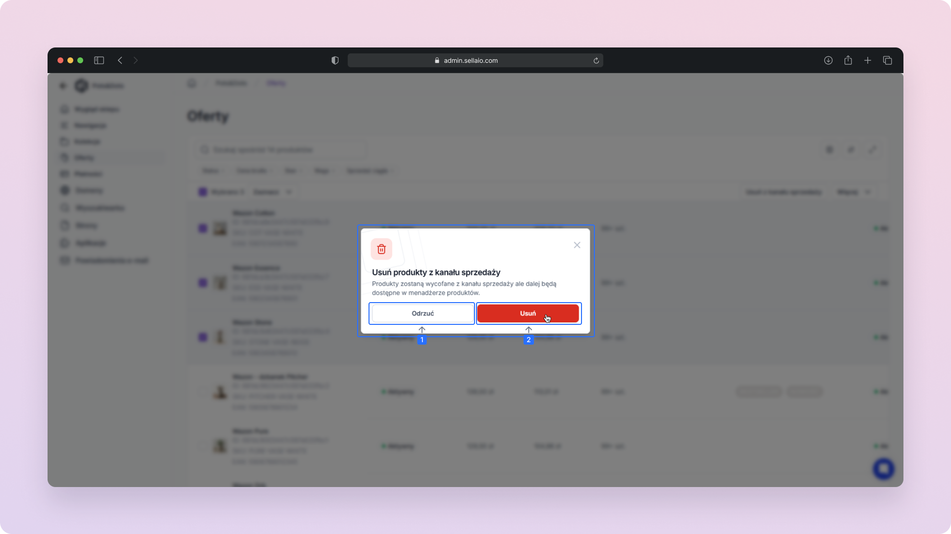 Usuń z kanału sprzedaży - Kliknij przycisk usunięcia.