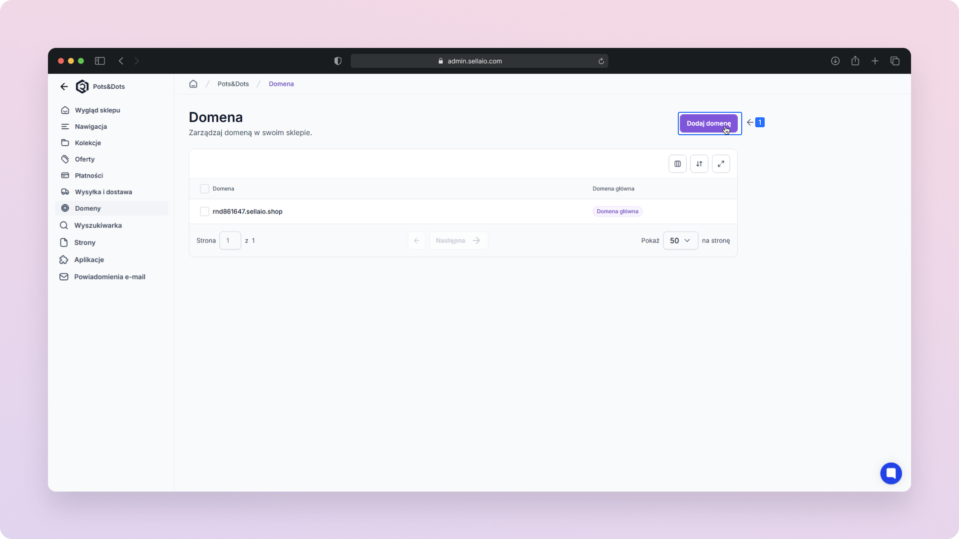 Dodaj domenę – Kliknij ten przycisk, aby dodać nową domenę do swojego sklepu.