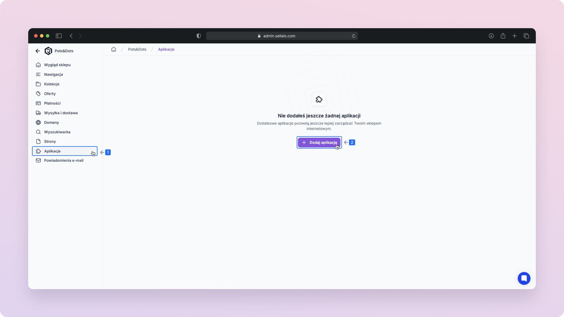 W menu bocznym kanału sprzedaży przejdź do sekcji Aplikacje.