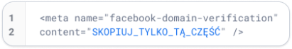 W instrukcji od Facebooka zobaczysz tag HTML – skopiuj z niego wyłącznie klucz, czyli oznaczoną część widoczną poniżej.