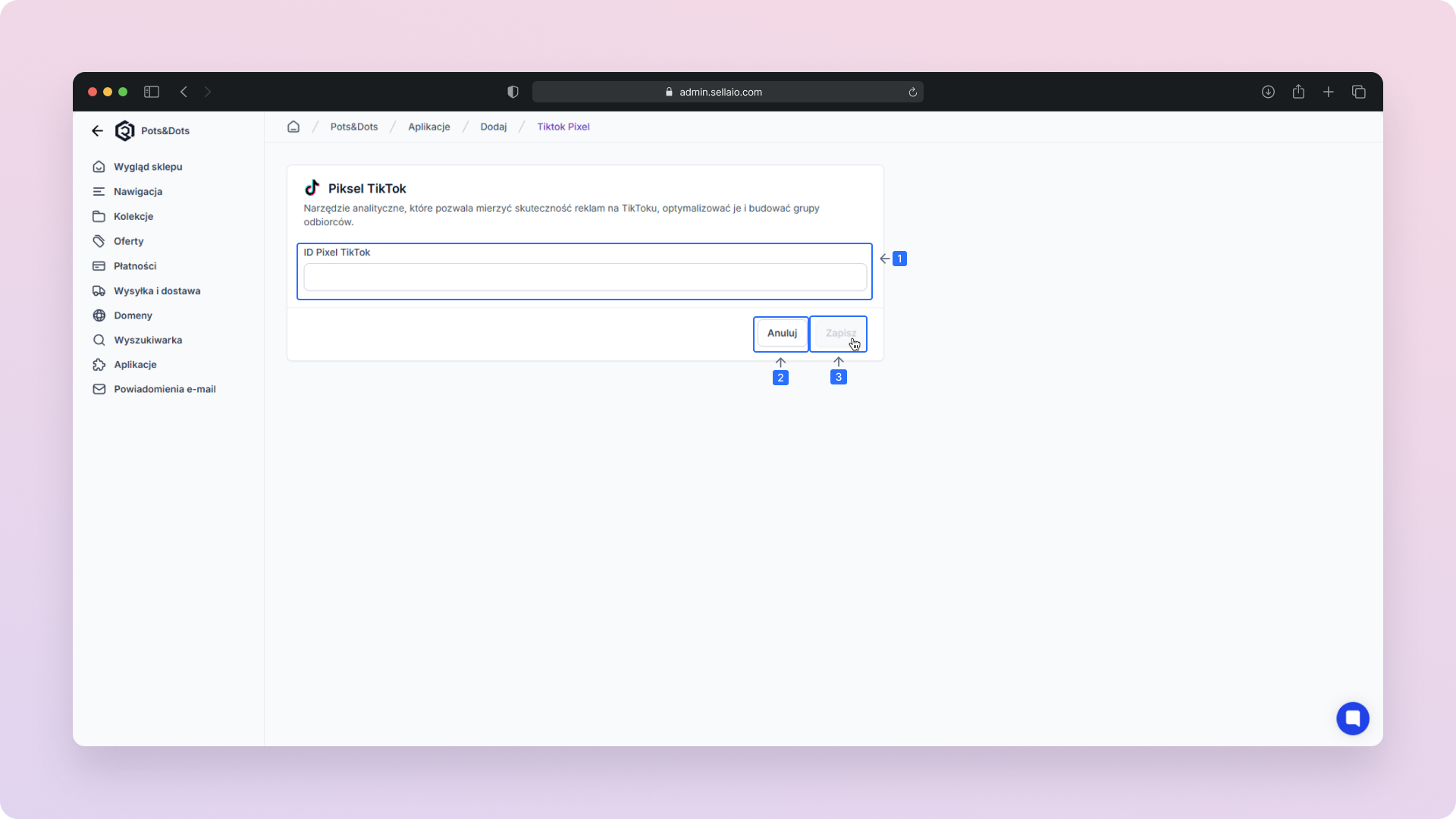 Anuluj – Kliknij, jeśli jednak nie chcesz dodawać Piksela Facebooka.