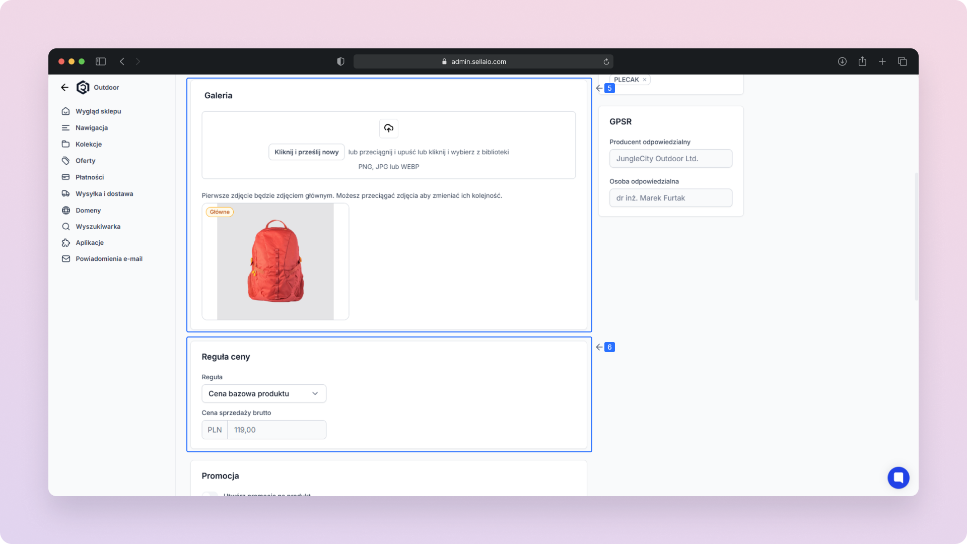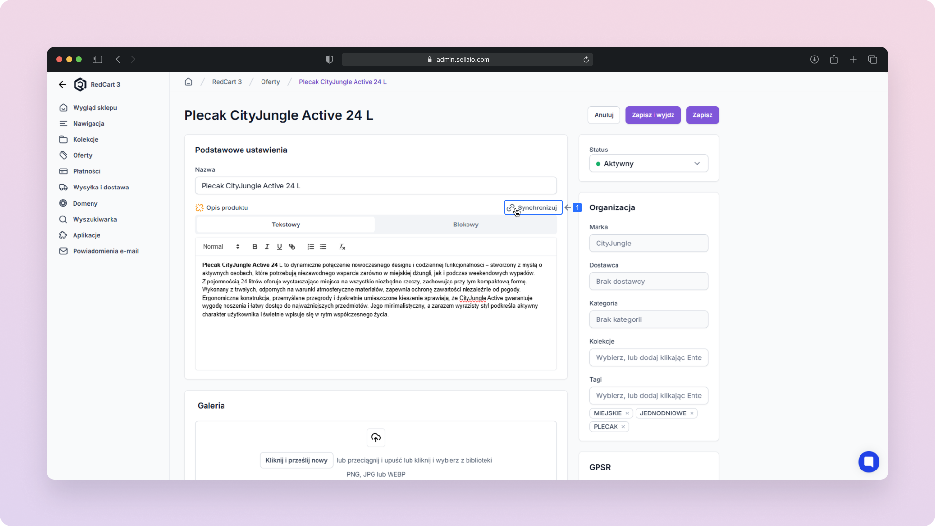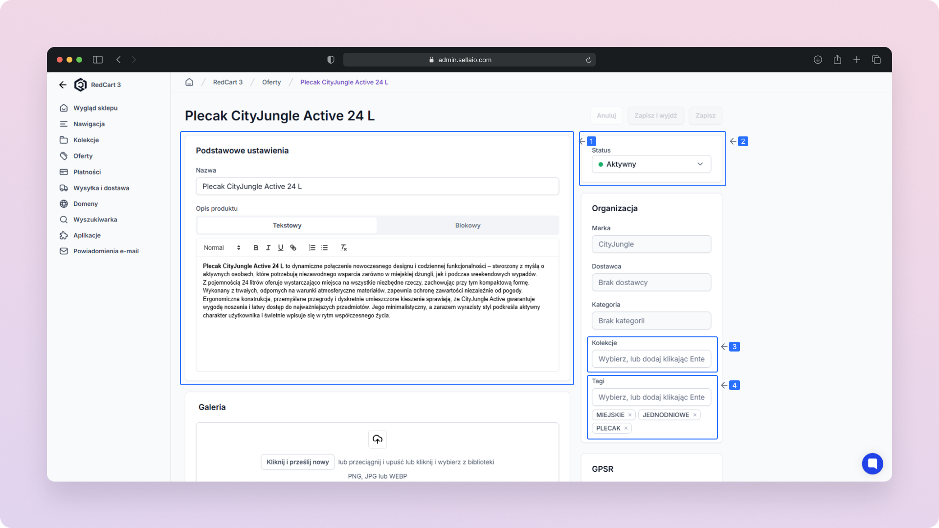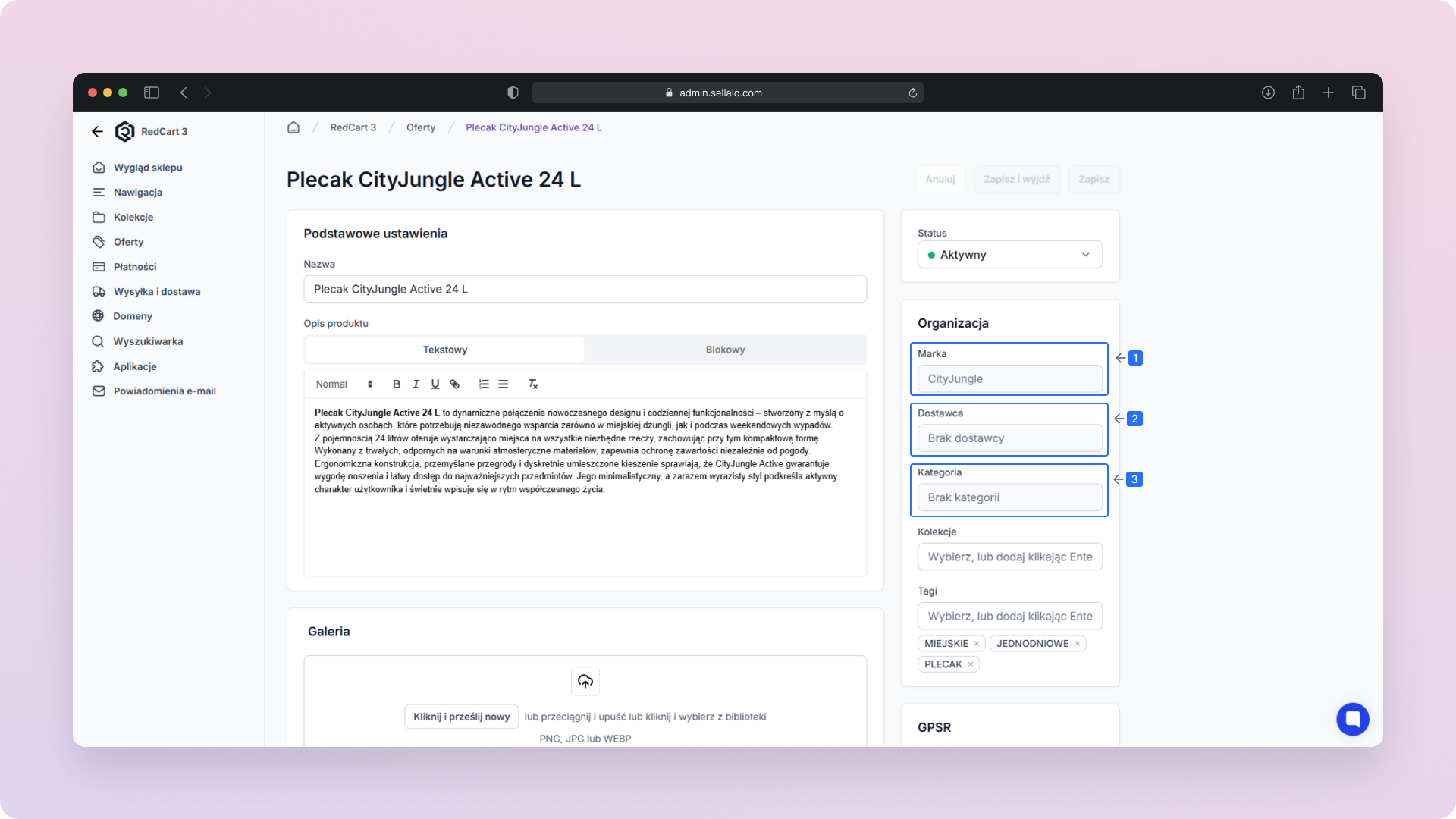 Galeria – Zmieniaj lub dodawaj zdjęcia produktu.