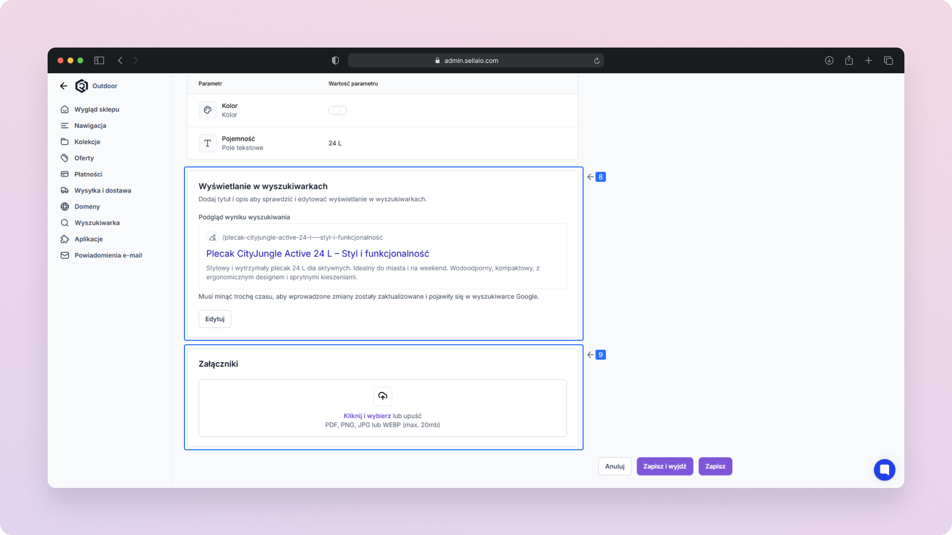 Załączniki - Zmieniaj lub dodawaj załączniki do produktu.