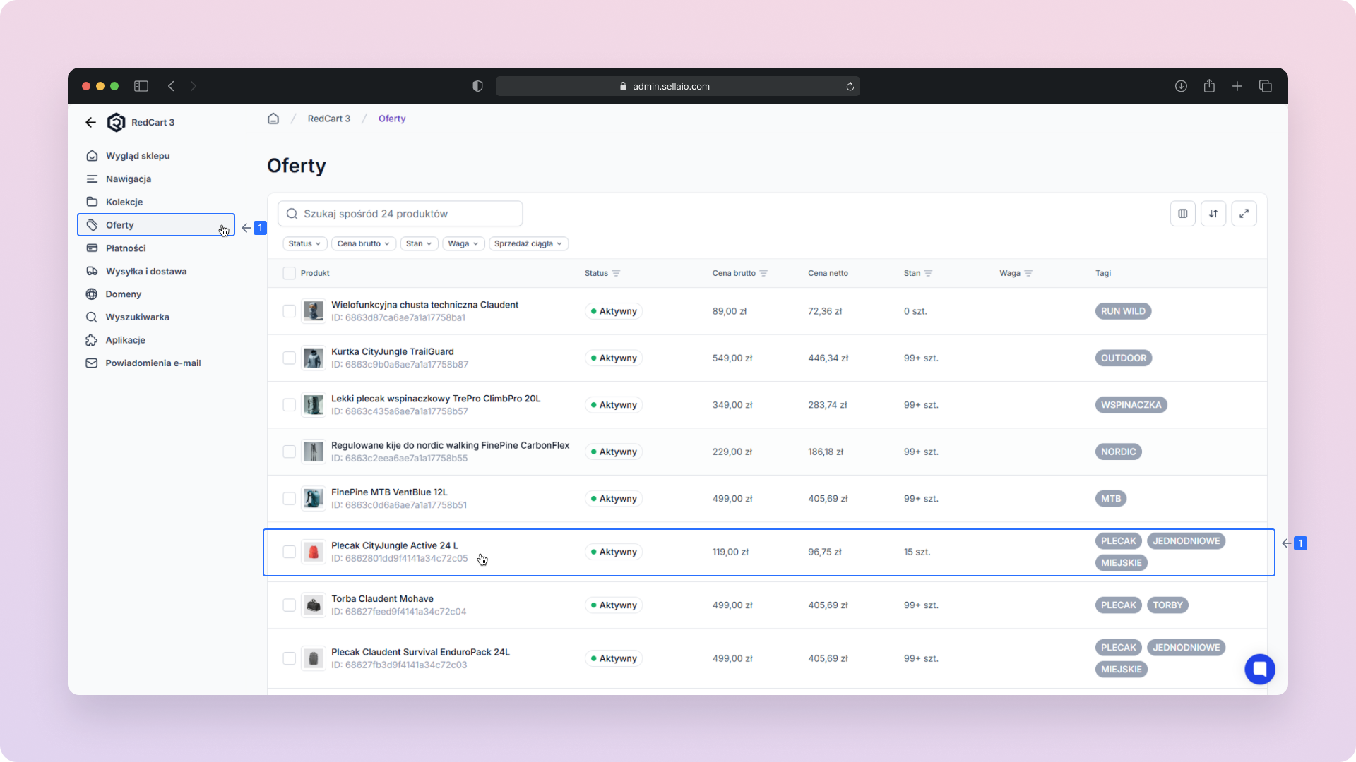 W menu bocznym (tzw. nawigacji) przejdź do Twojego kanału sprzedaży RedCart.