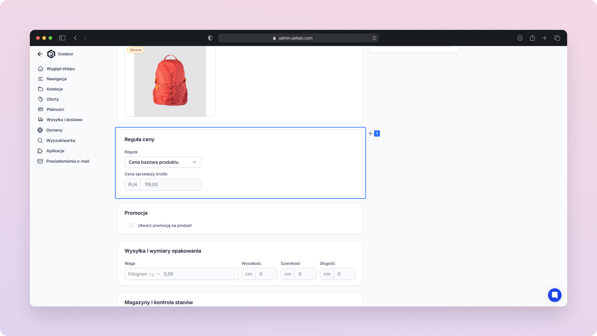 Cena jest jednym z najważniejszych elementów wpływających na decyzje zakupowe klientów, może zarówno przyciągać uwagę, jak i skutecznie zniechęcać do zakupu. W naszym systemie podstawową cenę produktu ustawiasz wygodnie w produktach w Centrum Sprzedaży.