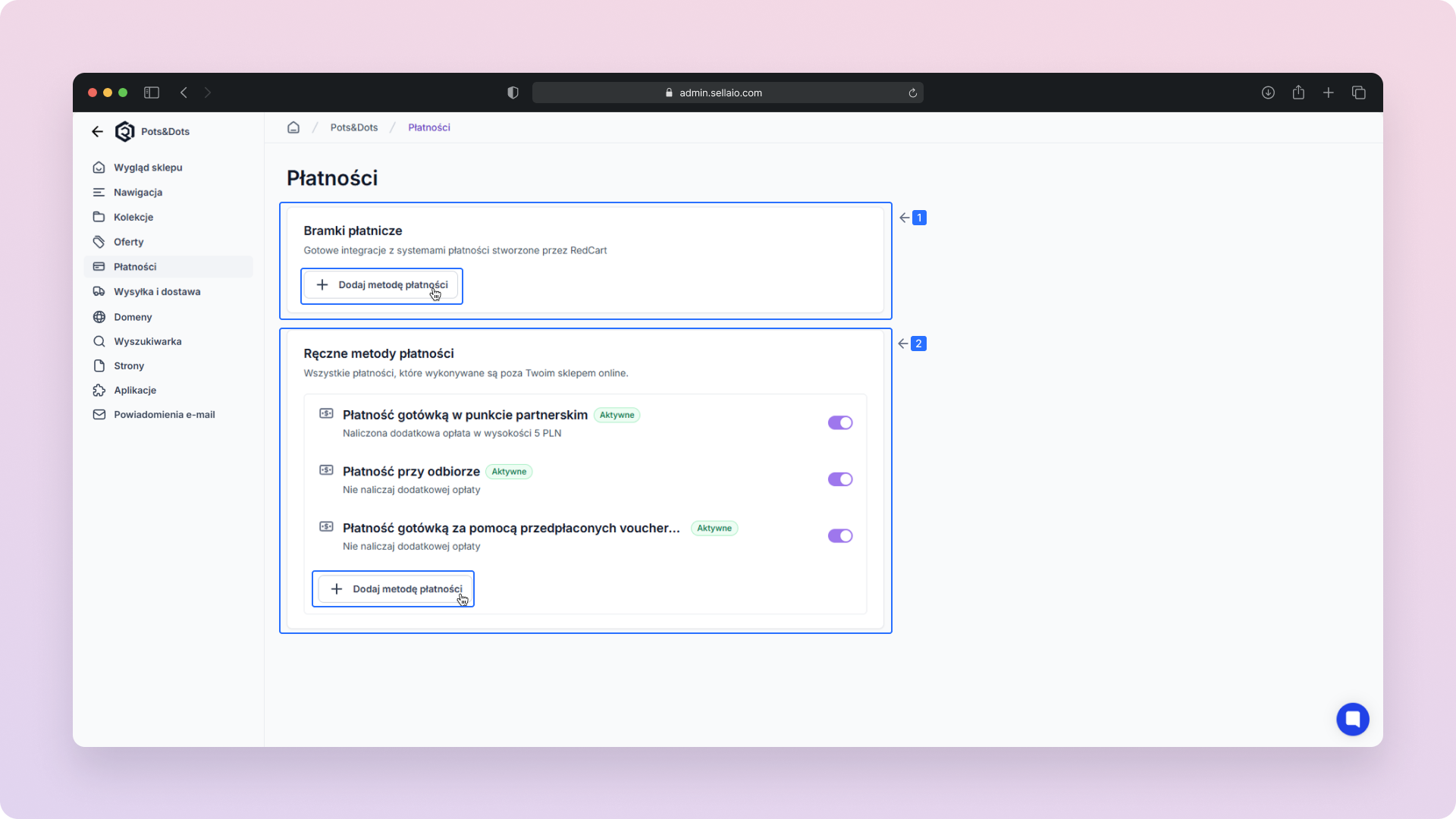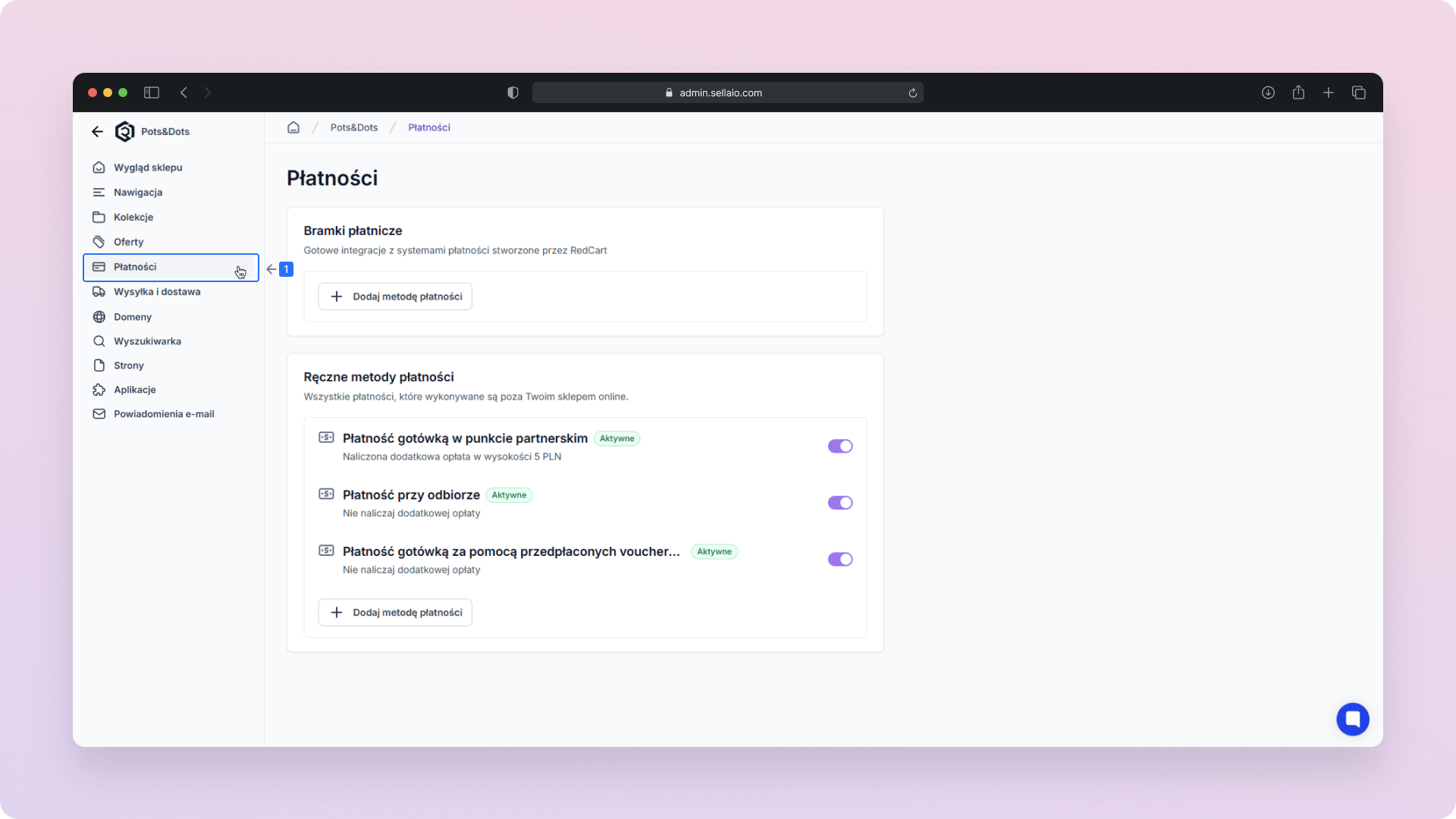 W nawigacji kanału sprzedaży przejdź do sekcji Płatności.