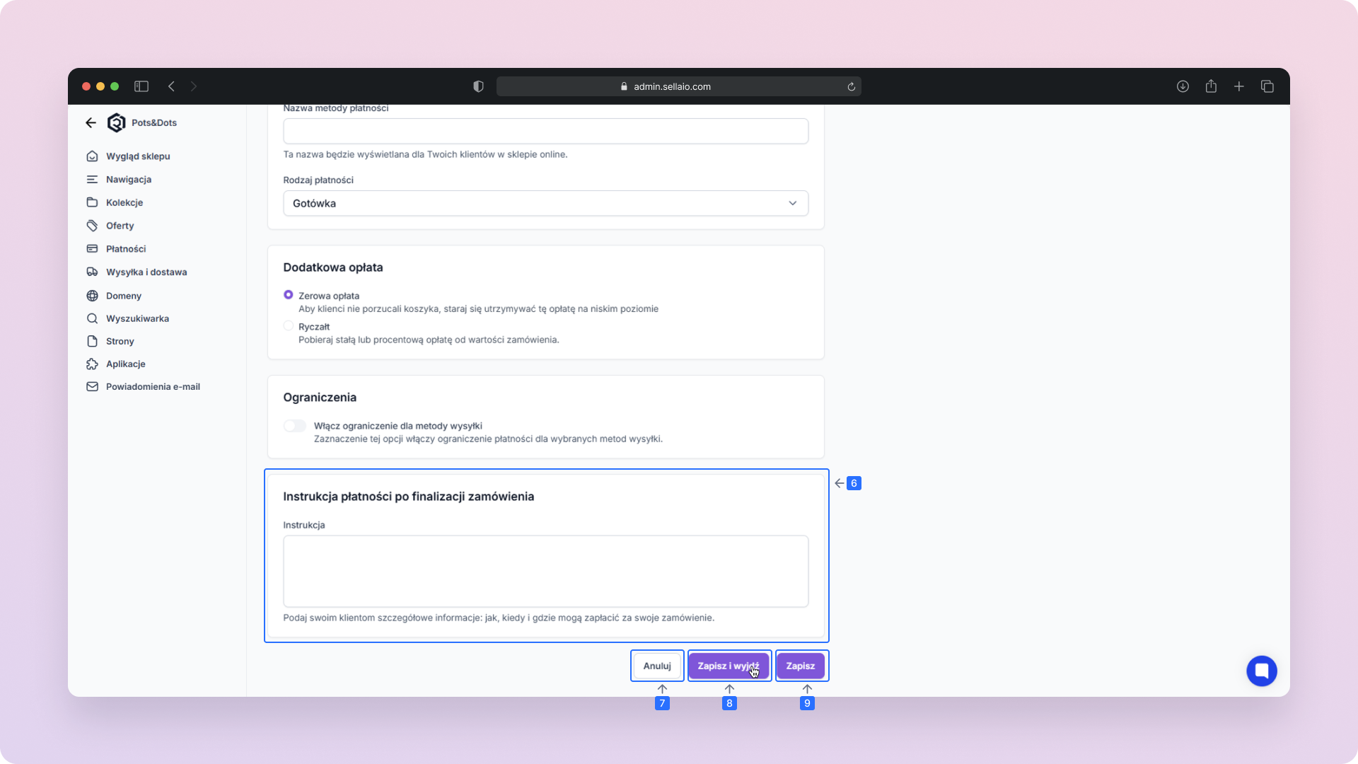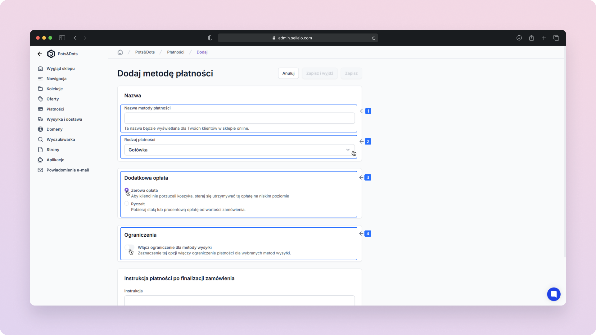 Po dodaniu własnej metody płatności, zweryfikuj jej poprawność i zapisz zmiany, aby była dostępna w sklepie.