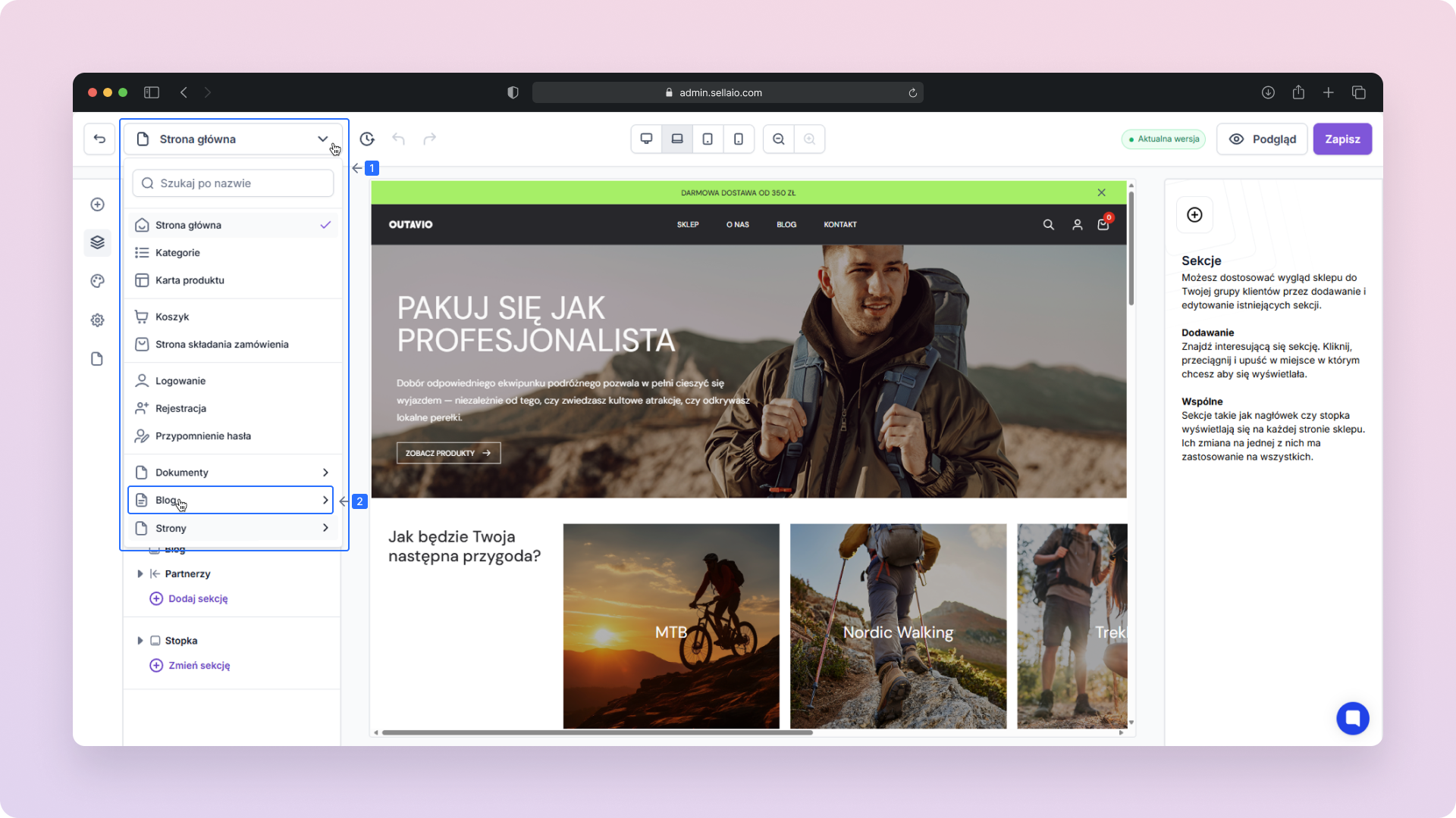 Strona główna sklepu - To pierwsza strona, która wyświetla się po wejściu do Designera.