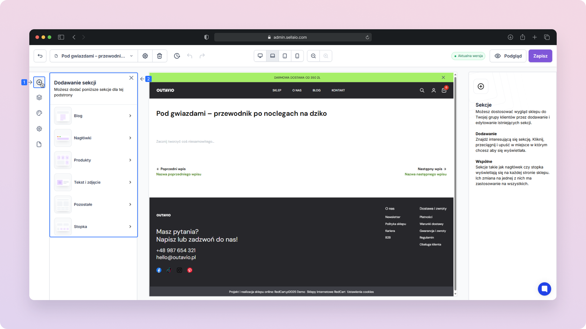 Teraz wiesz, jak w pełni wykorzystać potencjał bloga w Designerze. Dzięki prostemu i intuicyjnemu edytorowi możesz budować angażujące artykuły, wzbogacone o zdjęcia, linki, produkty i sekcje promocyjne. Co więcej, masz pełną kontrolę nad optymalizacją SEO, co bezpośrednio wpływa na widoczność Twojej marki w wyszukiwarkach. Od teraz możesz nie tylko pisać bloga, możesz prowadzić go strategicznie, świadomie i z realnym wpływem na rozwój Twojego sklepu.