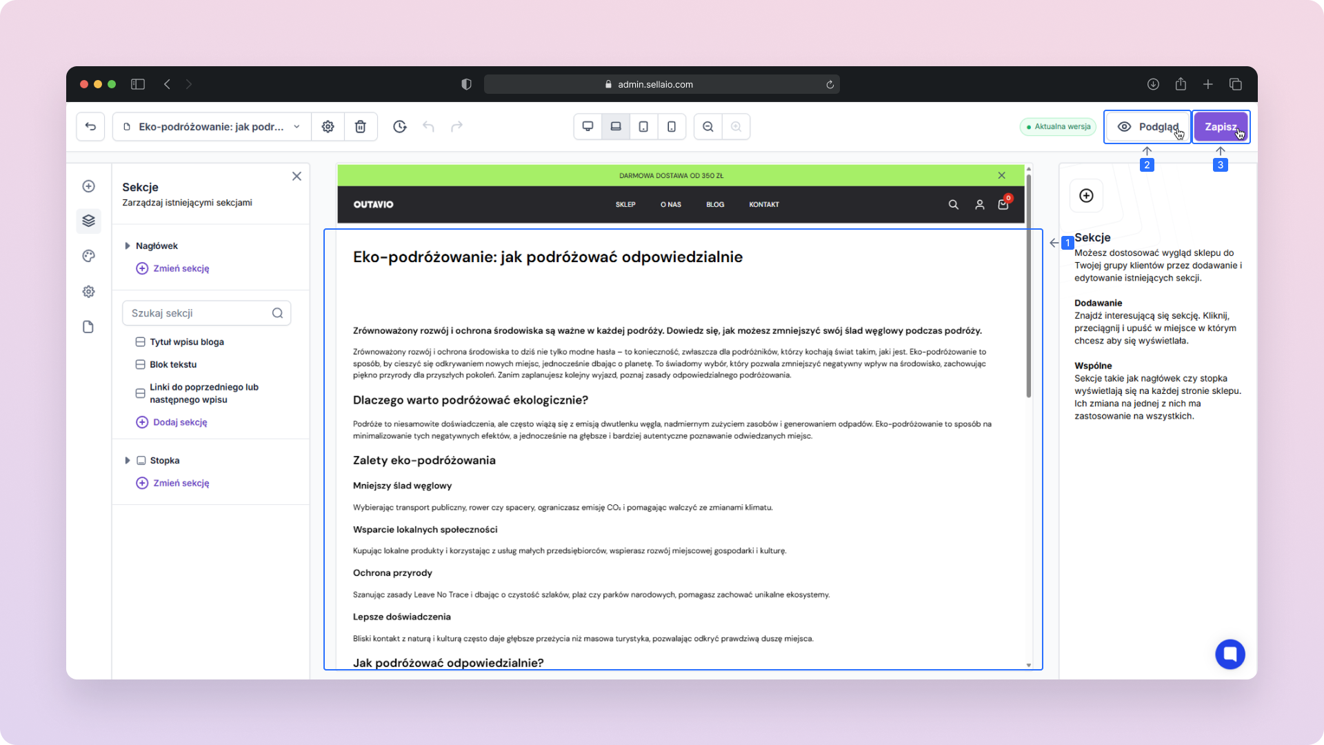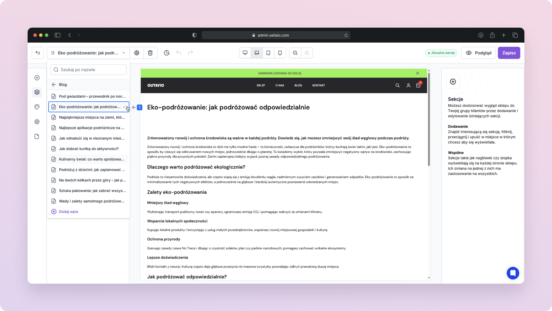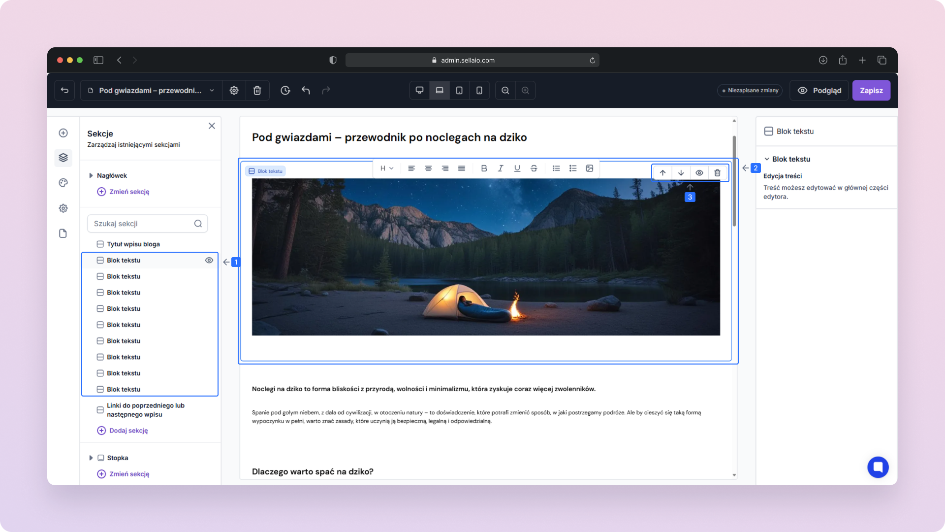 Edytuj dowolnie treść wpisu – Możesz zmieniać tekst, zdjęcia, sekcje i inne elementy.