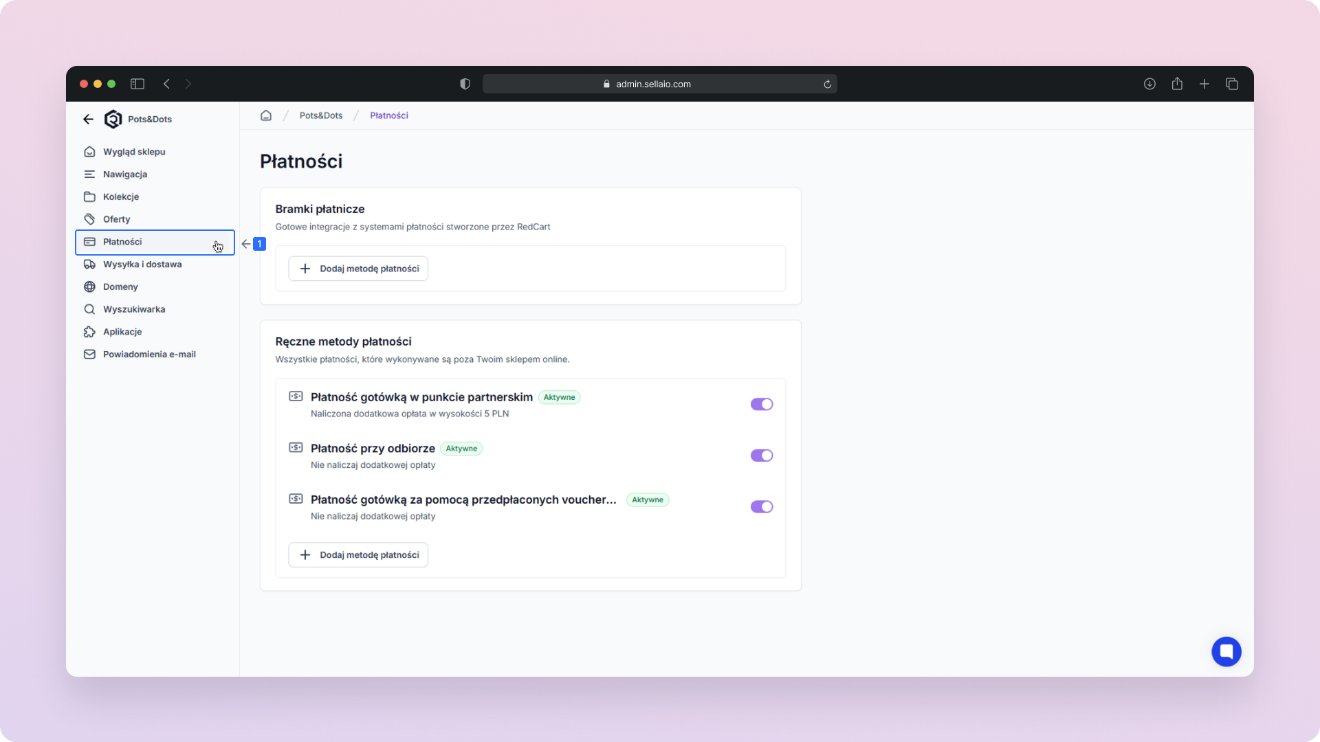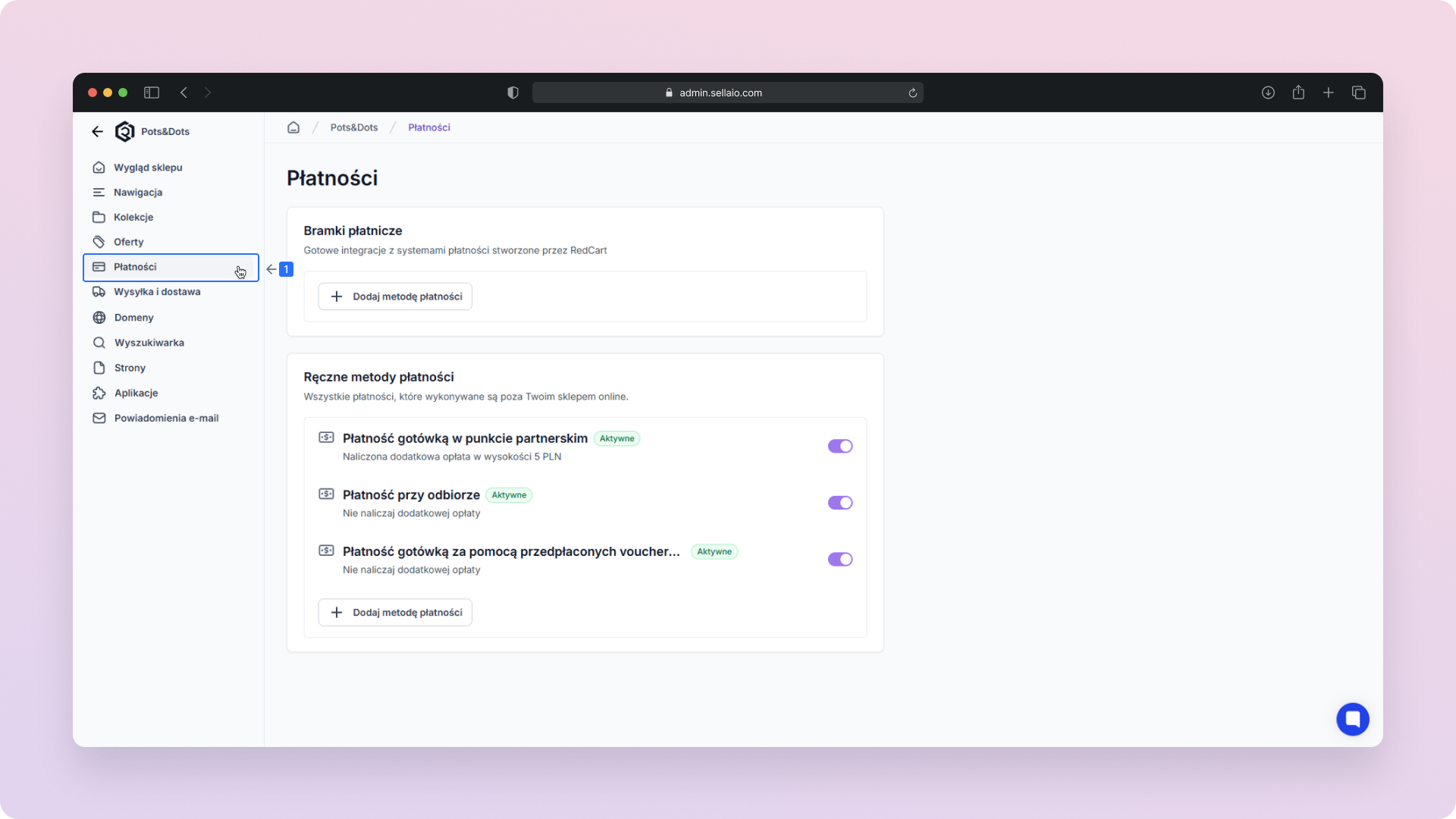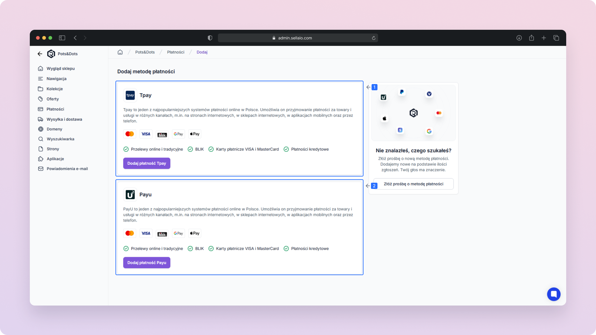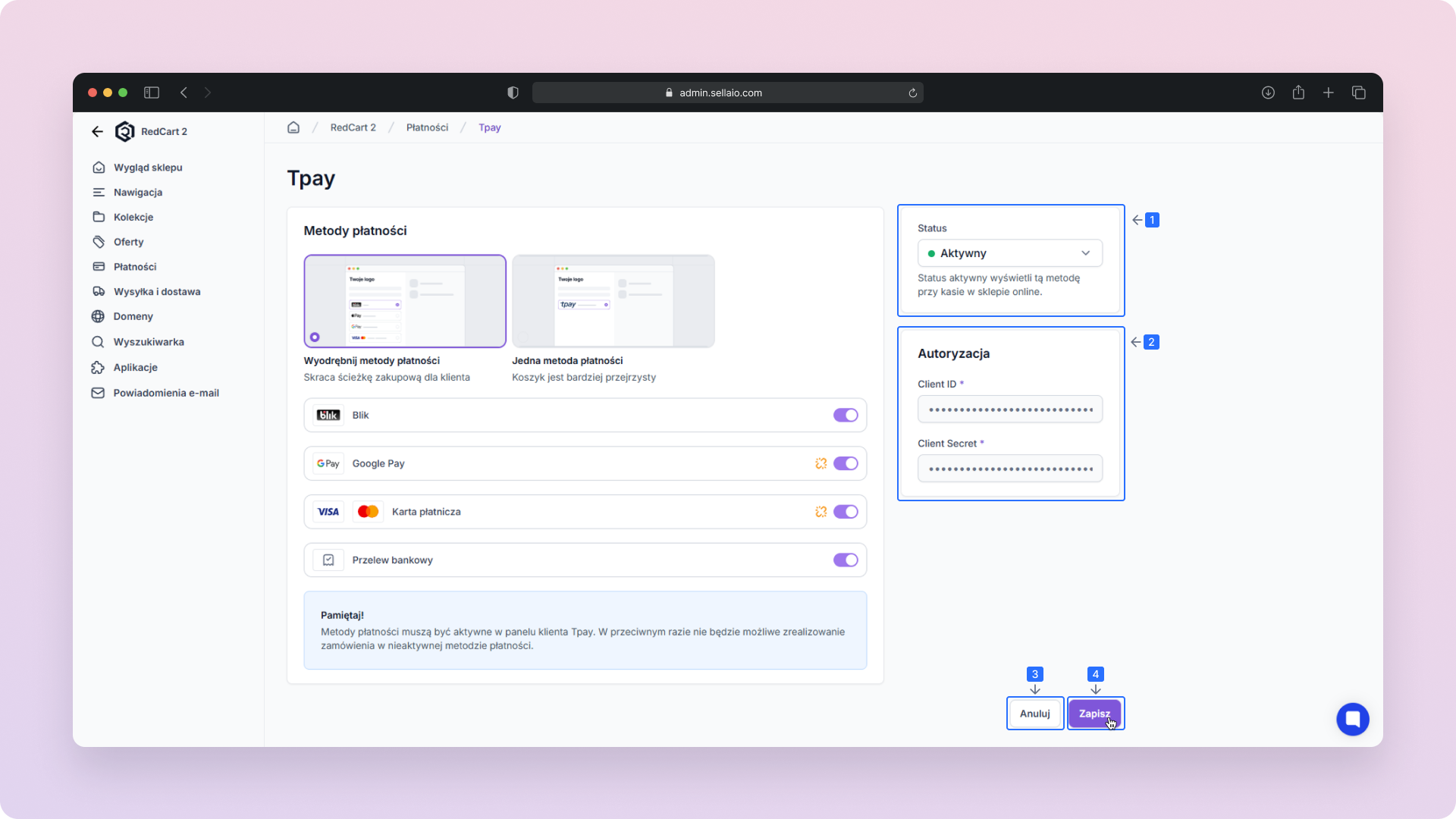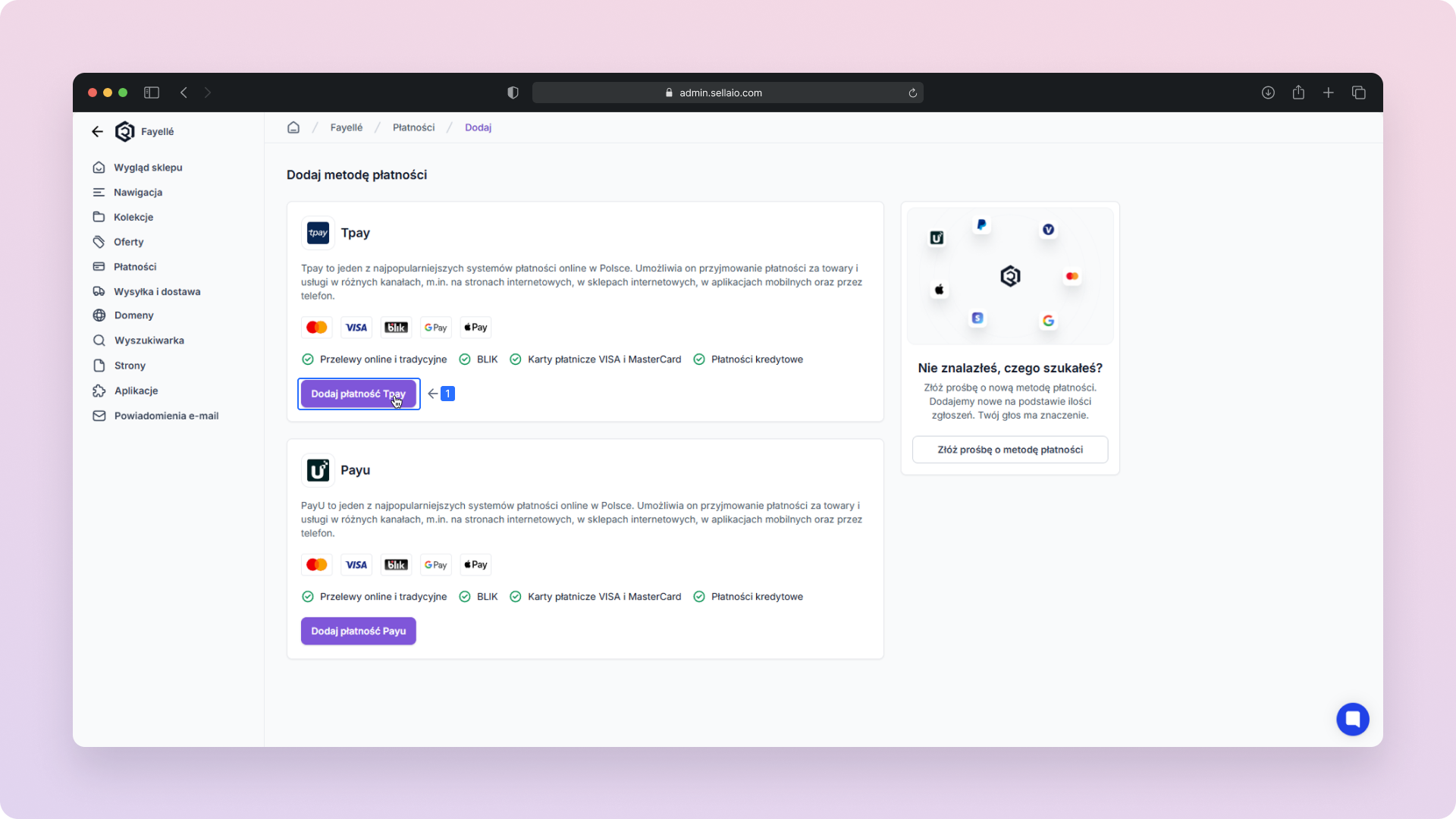 Włączenie / wyłączenie np. BLIKa – Możesz włączyć lub wyłączyć dowolną metodę płatności, np. BLIK one-step, kartę płatniczą czy płatności mobilne.