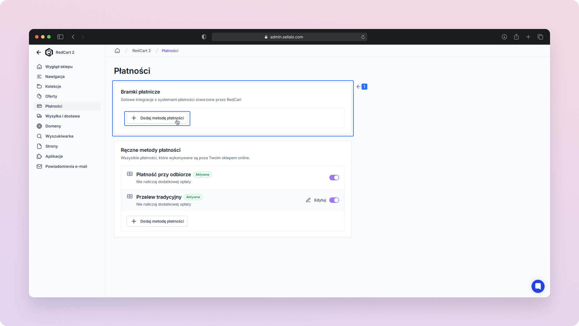 Dodaj metodę płatności – Kliknij ten przycisk, w sekcji Bramki płatnicze, aby rozpocząć konfigurację nowej metody płatności.