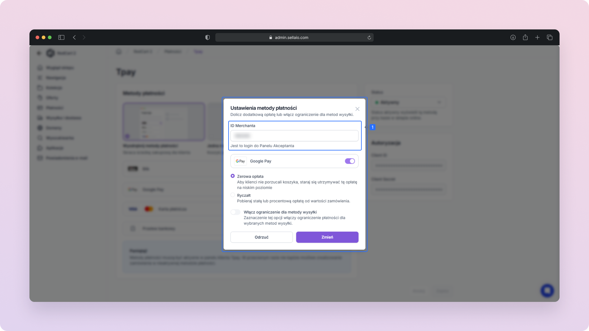 Google Pay – pole Merchant ID – Podczas konfiguracji Google Pay pojawi się dodatkowe pole do wpisania ID Merchanta.